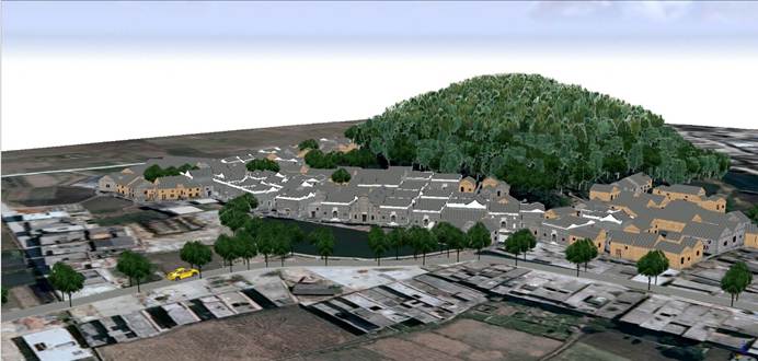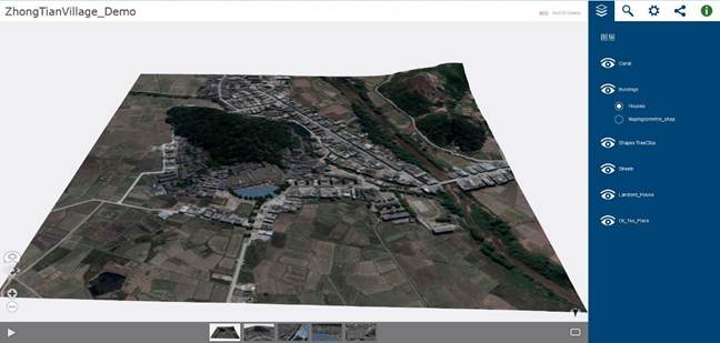 作品利用ArcGIS for Desktop、MapGIS和南方Cass等软件在常宁市旅游局获取的CAD数据的高程记录在高程线上,用克里金插值获取DEM 1:5000数据。通过实地调查和遥感影像做成了中田村的基础矢量数据。通过CityEngine软件通过几种方式对中田村建模,通过三维系统雏形对三维模型进行查询、浏览等。
