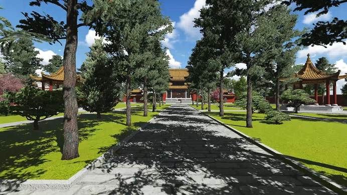 南岳大庙位于湖南省衡阳市南岳古镇北端,赤帝峰下,是中国江南最大的古建筑群,有“江南第一庙”“南国故宫”之称,南岳大庙是一组集民间祠庙、佛教寺院、道教宫观和皇宫殿宇于一体的古建筑群,也是我国南方及五岳之中规模最大的庙宇,占地面积98500平方米。南岳大庙分为九进四重院落,四周围以红墙,角楼高耸,寿涧山泉,绕墙流注,颇似北京故宫风貌。南岳大庙佛道共存,东侧为八个道观,西侧为八个佛寺,堪称我国寺庙一绝。本项目通过卫星遥感、现场测量等方法采集建筑三维空间数据,通过AutoCAD软件绘制建筑二维矢量图并以此为基础精准构建虚拟三维建模软件,并在lumion3d、Twinmotion等虚拟现实软件中构建虚拟场景,实现了南岳大庙虚拟现实场景再现。该作品在第十三届湖南省普通高校师生美术 与设计艺术作品评选获二等奖。